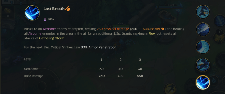 Yasuo’s ultimate, Last Breath (R), is a powerful tool that allows him to knock up enemies and deal massive damage. It can be used to initiate fights, catch out enemies, or turn the tide of a team fight. However, it requires setup, as it can only be used on enemies that have been knocked up.